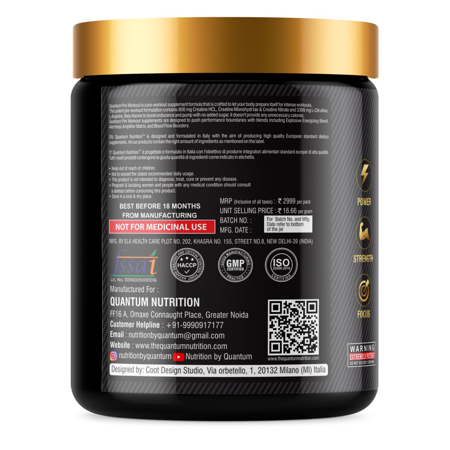 Quantum Nutrition Cyclops Pre-Workout – Watermelon is a scientifically formulated, high-stimulant pre-training supplement designed to elevate your workout performance. Powered with a potent 3399mg Pump Blend, 200mg Caffeine, and 800mg Creatine Blend, this formula helps amplify energy, focus, endurance and strength.