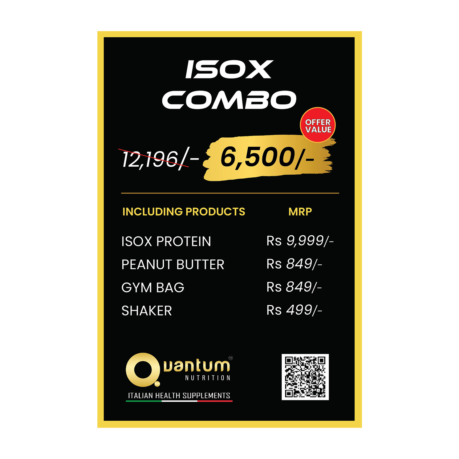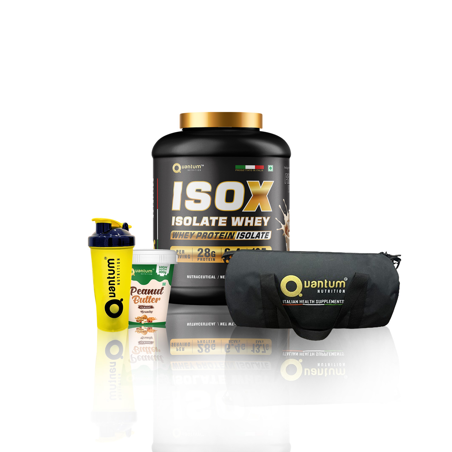 Quantum | ISOX Combo | ISOX Protein | Peanut Butter | Gym Bag | Shaker