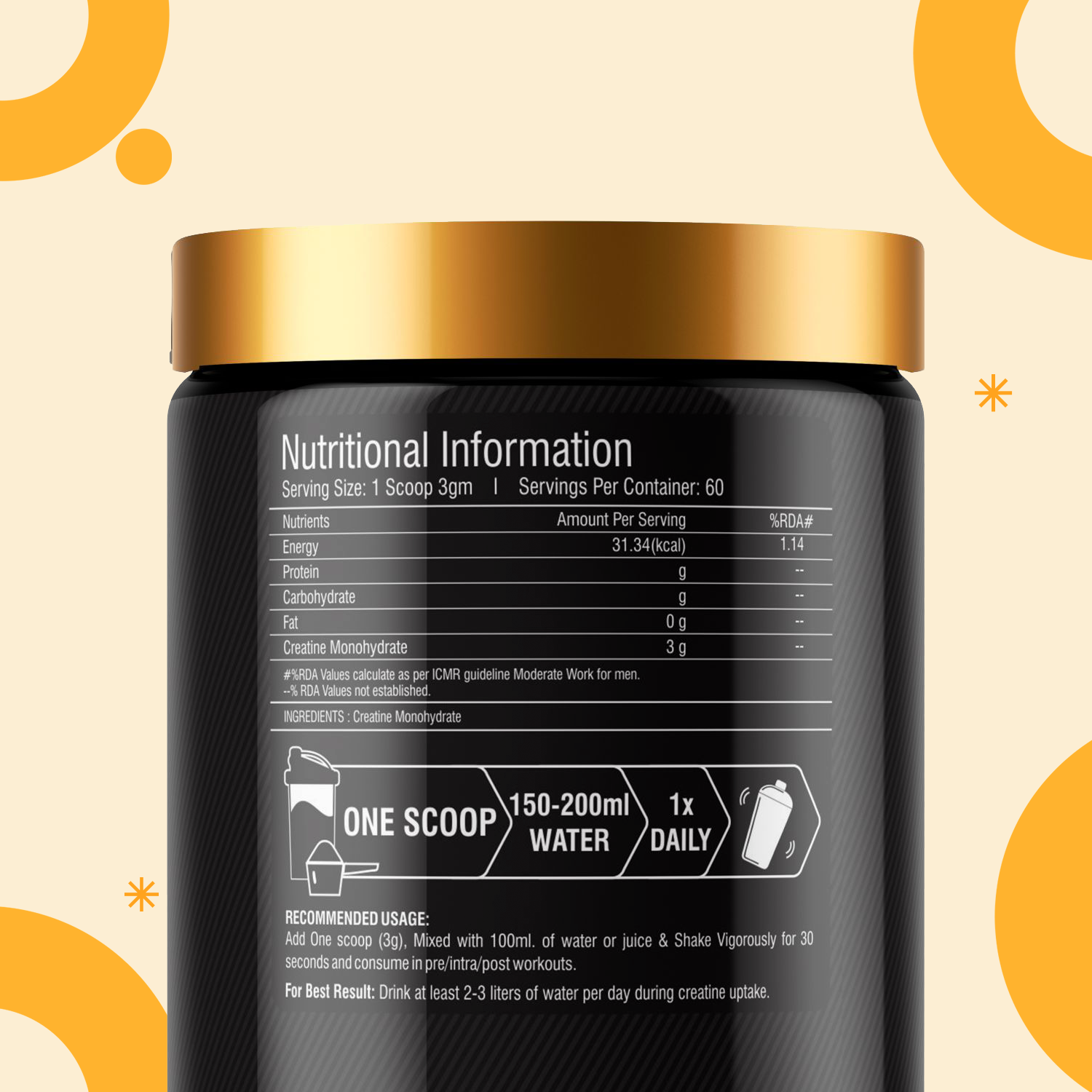 Add one scoop (3g) to 150–200ml of water or juice, shake well, and consume once daily.
