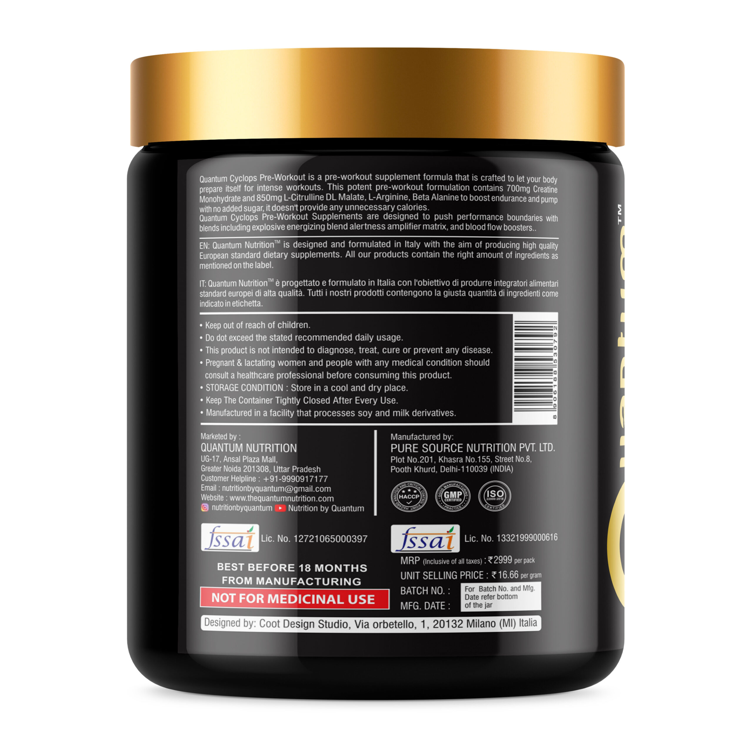 Quantum Nutrition Cyclops Pre-Workout – Blueberry Blast | High-Stim Pre Workout – 180g