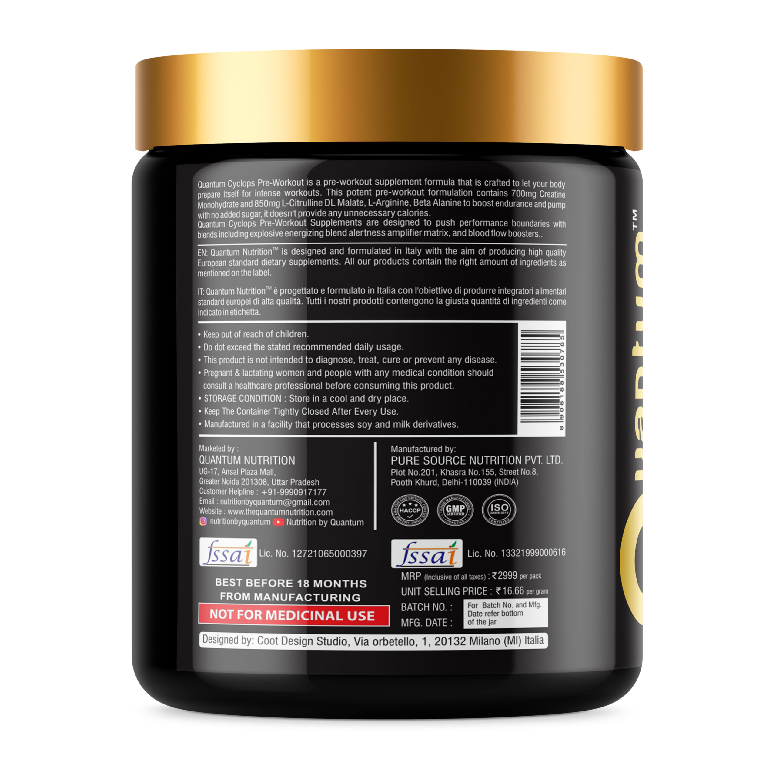 Ignite your training sessions with Italy-formulated Cyclops Pre-Workout, crafted to deliver explosive energy, razor-sharp focus, and unstoppable endurance. Designed for athletes, bodybuilders, and fitness enthusiasts, this pre-workout blend fuels your performance right from the first scoop.