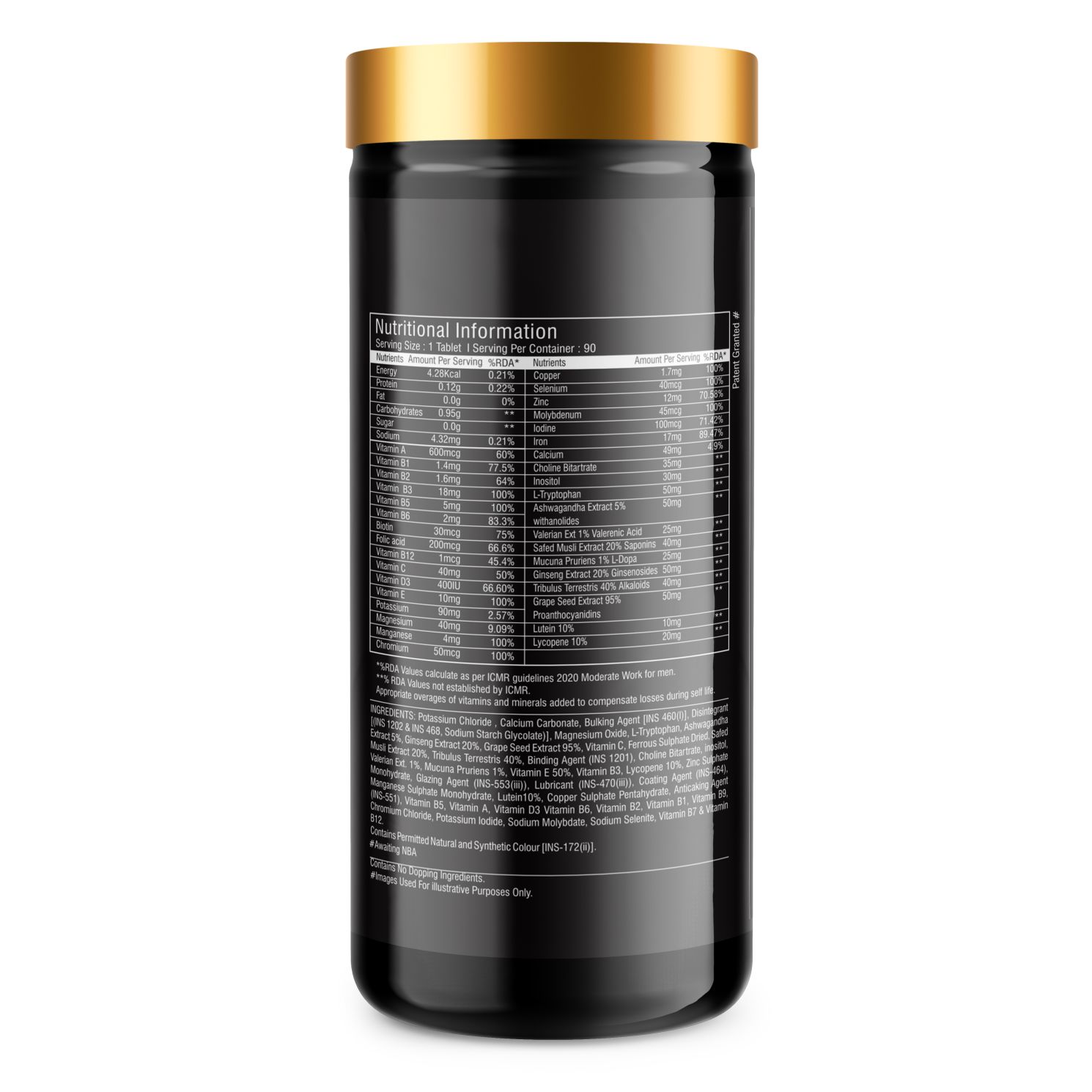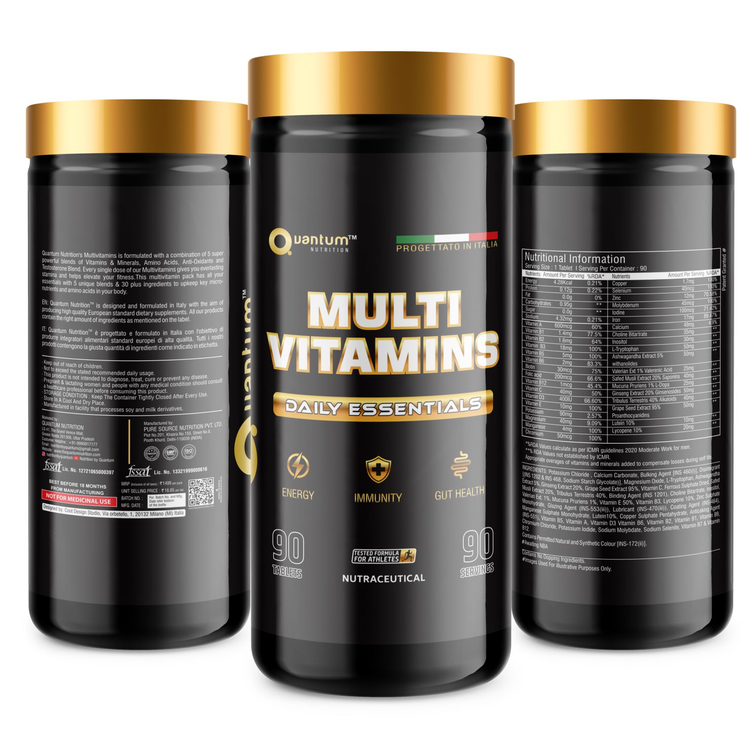 Quantum Nutrition Multivitamins is scientifically formulated with a combination of 5 powerful blends—Vitamins & Minerals, Amino Acids, Antioxidants, Testosterone Blend, and Herbal Extracts.