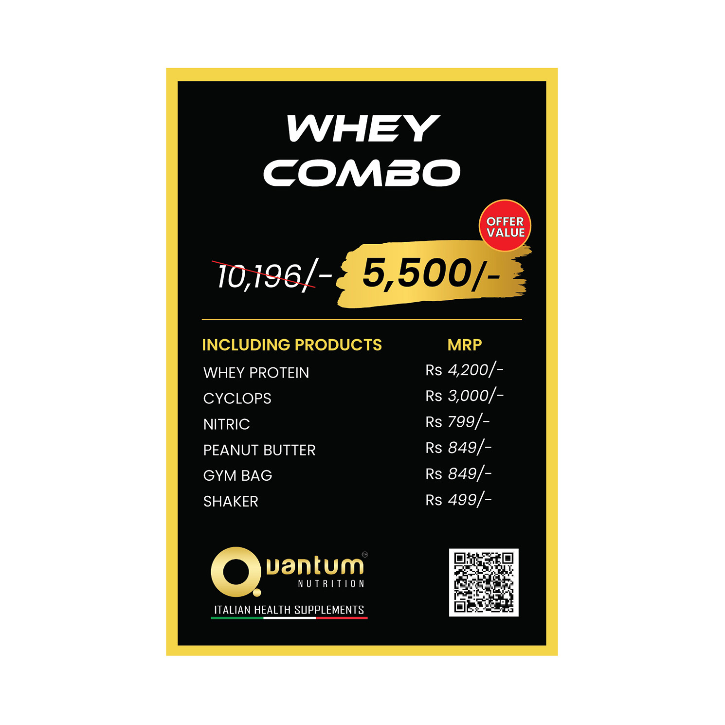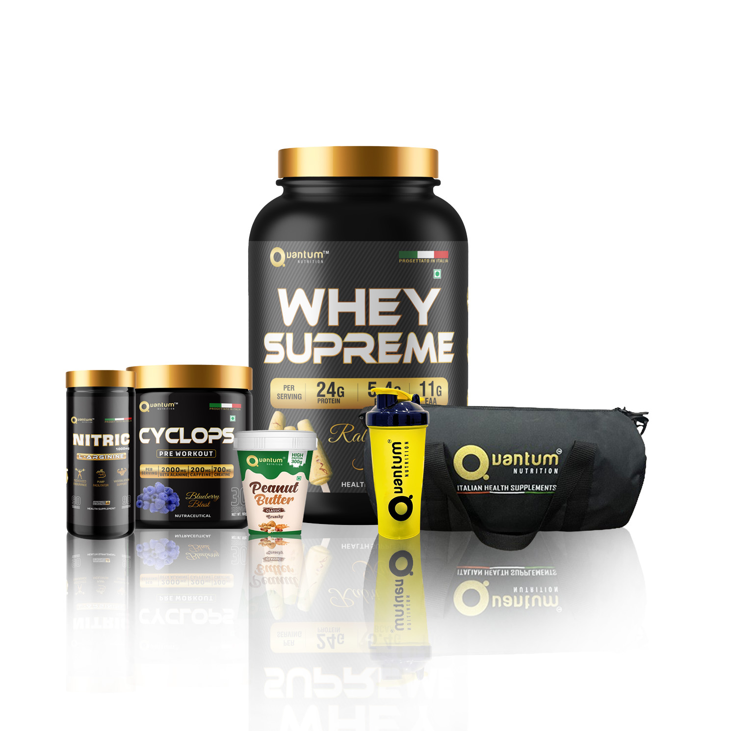 Quantum Whey Combo | Whey Protein | Cyclops | Nitric | Peanut Butter | Gym Bag | Shaker